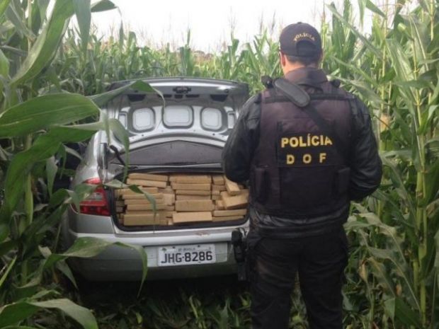 Ele dirigia um Renault Megane prata, roubado em Brasília, que foi abandonado numa lavoura de milho com 643 quilos de maconha.