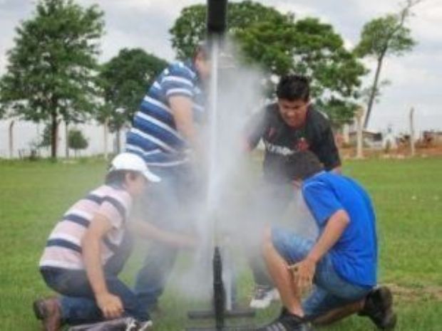Ela explicou que as equipes precisam construir um foguete com materiais recicláveis e que sejam lançados por pressão da água. “Nós medimos a altura do voo, a precisão ao acertar um alvo, a 40 metros de distância, e também a queda com o paraquedas”, contou Patrícia.