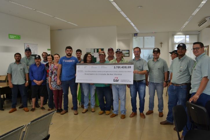 Durante o evento, o gerente da unidade Rodrigo Kurmann, apresentou um balanço das ações da Cooperativa Lar desenvolvidas ao longo do ano de 2019 e falou sobre as perspectivas para este ano de 2020. Em relação às sobras, à cooperativa este ano distribuiu 128 milhões aos cooperados das unidades de atuação da cooperativa, beneficiando centenas de cooperados nos Estados de Mato Grosso do Sul, Paraná e Santa Catarina. O excedente representa mais de 170% maior do que o valor distribuído em 2019.