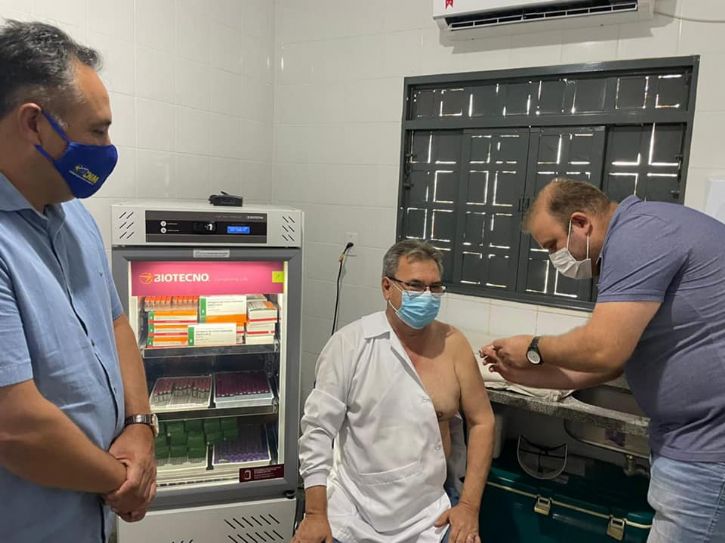 A primeira pessoa a receber a dose da vacina no município da fronteira, na manhã dessa terça-feira, foi o médico, Dr. Luiz Fernando Carvalho Barba.