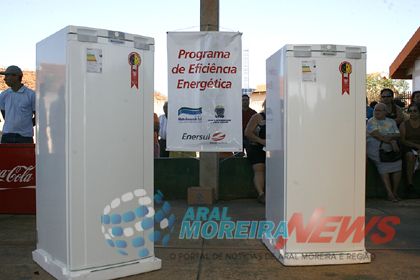 — 1203Aral Moreira (MS) – A Administração Municipal do Prefeito de Aral Moreira, Edson de David, em parceria com a Enersul (Empresa de Energia Elétrica de Mato Grosso do Sul) e o Governo do Estado entregam, na manhã desta terça-feira (9), 160 geladeiras para as famílias de baixa renda do município. A ação faz parte do Programa de Eficiência Energética, desenvolvida pelo Governo do Estado e a Enersul.