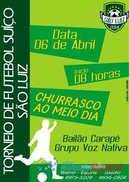 — 3040Aral Moreira (MS) – A comunidade do distrito do São Luiz, em Aral Moreira, sedia no próximo dia 6 de abril, um domingo, um torneio de futebol suíço aberto para a participação de equipes de toda a região.