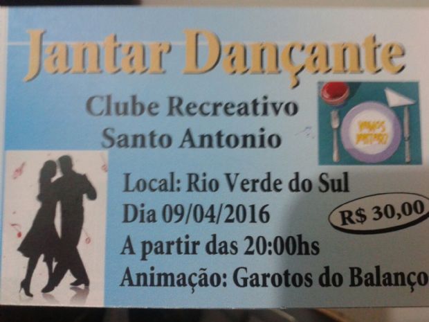 — 1039Aral Moreira (MS) – Acontece neste sábado, 9 de abril, no Clube Recreativo Santo Antônio, no Rio Verde do Sul, o Jantar Dançante.