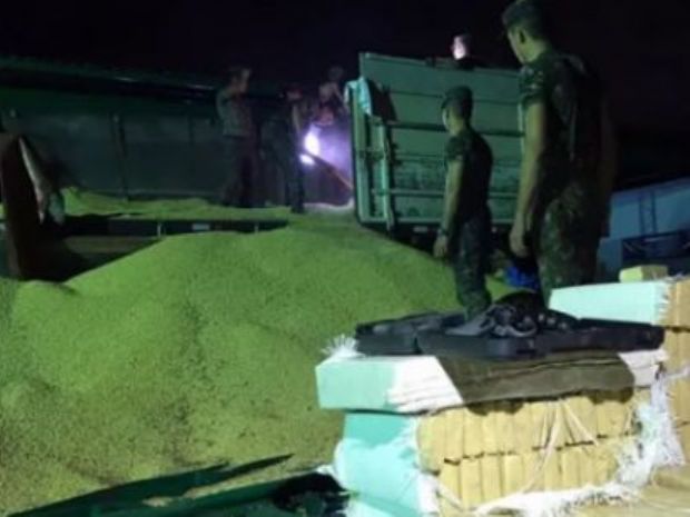 — 2641Aral Moreira (MS) – Mais de meia tonelada de maconha foi apreendida em um caminhão carregado com milho na noite dessa terça-feira (11) em Aral Moreira. A apreensão, realizada por Militares do 11º RC MEC de Ponta Porã que faziam exercício de treinamento do SISFRON (Sistema Integrado de Monitoramento de Fronteiras) na cidade, ocorreu na Rodovia MS-165, próximo a linha Internacional.