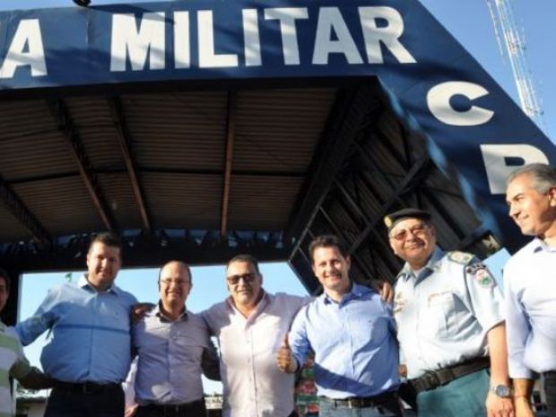 No município, Reinaldo Azambuja, acompanhado de deputados estaduais, federais, secretários, entre outros, visitou obras e fez a entrega de novas viaturas para reforçar a segurança pública de seis municípios da região de fronteira.