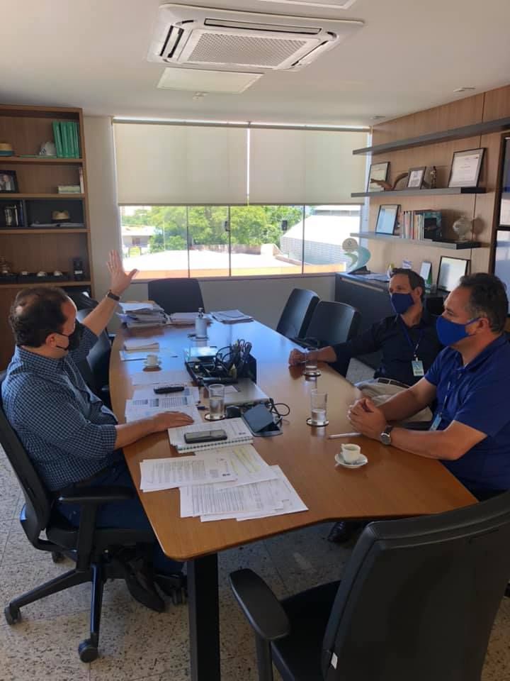 O prefeito Alexandrino Garcia esteve na sede da Sanesul para acompanhar o cronograma de obras.