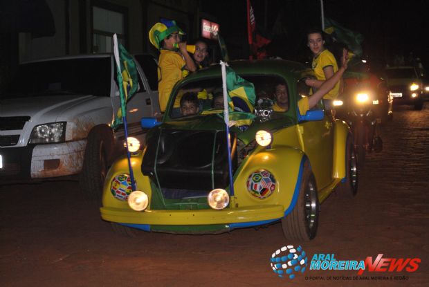 — 2040Aral Moreira (MS) – Logo após o apito final do árbitro, que garantiu a vitória do Brasil sobre a Croácia pelo placar de 3 a 1 na noite desta quinta-feira (12), na primeira partida na Copa do Mundo, uma grande multidão verde e amarela tomou conta das ruas em Aral Moreira.