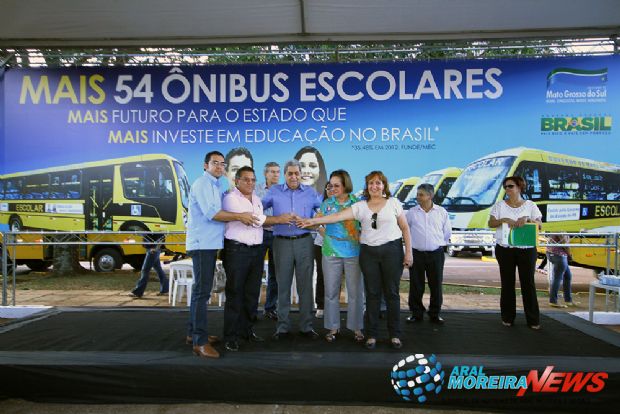 Durante o ato que aconteceu na sede do Detran/MS, na Capital do Estado, foram entregues pelo governador André Puccinelli 54 novos ônibus escolares para atender 51 municípios do Estado. Na aquisição da nova frota de veículos o governo de Mato Grosso do Sul investiu 12,8 milhões em parceria com o governo Federal.