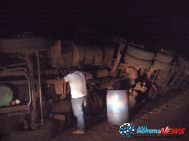 Segundo as informações, a carreta teria carregado em um armazém na região de Aral Moreira e seguia para Santa Catarina. Ninguém se feriu.
