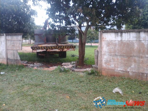 — 1500Aral Moreira (MS) – O condutor de um caminhão carregado com tubos de concreto perdeu o controle do veículo e bateu no muro de uma escola no final da tarde dessa terça-feira (20), em Aral Moreira.