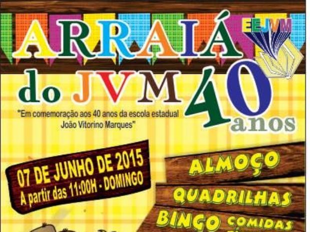 — 1159Aral Moreira (MS) – Acontece neste domingo, 7 de junho, no Salão Paroquial de Aral Moreira, o Arraiá da escola estadual João Vitorino Marques. O evento, previsto para iniciar a partir das 11 horas da manhã, também faz parte da comemoração dos 40 anos da instituição de ensino.