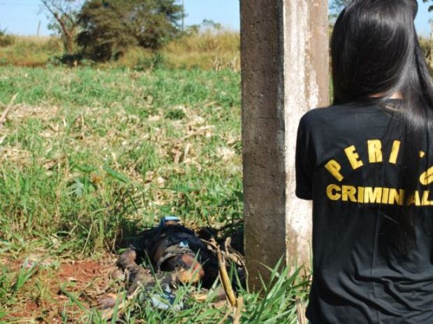 O corpo, que foi localizado por populares que passavam pelo local, estava enrolado em uma lona azul e estava parcialmente queimado.