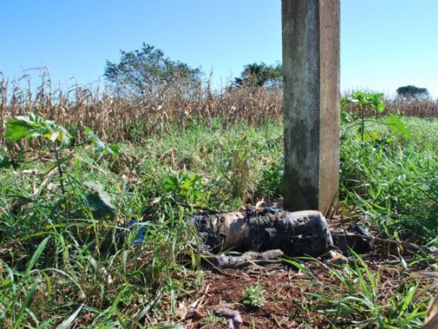De acordo com o registro com o registro policial, o corpo estava parcialmente carbonizado e enrolado em lonas preta, o que indica que a morte pode não ter ocorrido no local onde o corpo foi encontrado. Na cabeça, havia um saco plástico azul.