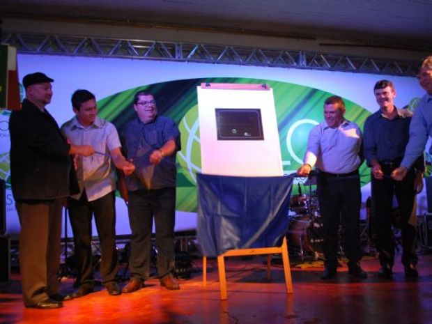 Palco da cerimônia de inauguração o Salão Paroquial da cidade, que recebeu uma decoração especial para o evento, ficou completamente lotado durante o ato.