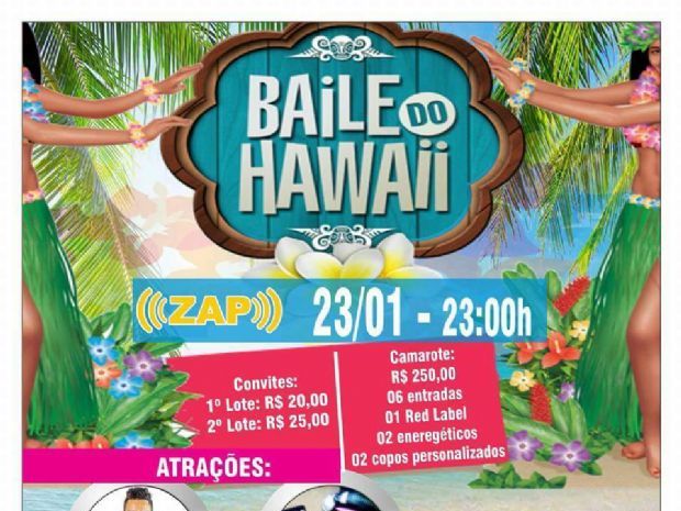 — 3492Aral Moreira (MS) – Acontece neste sábado, 23 de janeiro, na Danceteria Zap, em Aral Moreira, a edição 2016 do Baile do Hawai.
